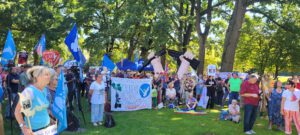 Für die DFG-VK Bayern forderte Thomas Rödl die Wiederinkraftsetzung des INF-Vertrags von 1987. Dieser Vertrag hatte die Stationierung landgestützter Raketen mit einer Reichweite zwischen 500 und 5.500 Kilometern verboten. Rödl betonte, dass Rüstungskontrolle wieder zu einem politischen Instrument werden müsse, um weitere Eskalationen zu verhindern. Jungen Männern empfahl er, den Kriegsdienst zu verweigern. Die Ärztin Elisabeth Heyn aus Nürnberg sprach für die Internationalen Ärztinnen und Ärzte für die Verhütung eines Atomkriegs (IPPNW). Sie erklärte, dass militärische Planungen bereits heute vorsehen, im Ernstfall zivile Krankenhauskapazitäten für den Kriegseinsatz zu reservieren. Dadurch könnten Zivilistinnen und Zivilisten bei der medizinischen Versorgung ins Hintertreffen geraten. Heyn berichtete vom Leid eines Patienten, der durch eine Explosion schwer verletzt wurde, um zu verdeutlichen, wie grausam Krieg für den Einzelnen ist. Ihre Warnung war unmissverständlich: „Wir werden euch nicht helfen können.“